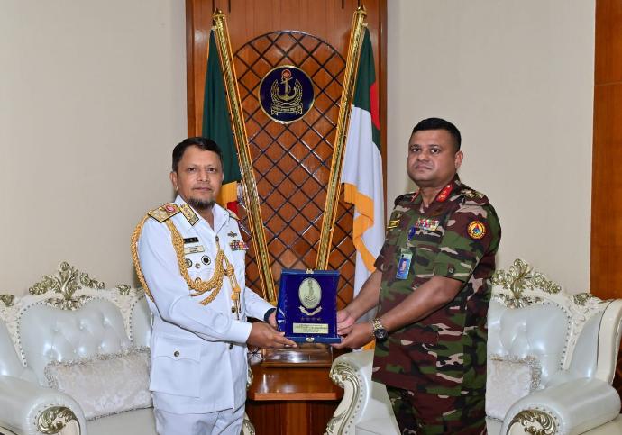 বিএনসিসি মহাপরিচালক এর পক্ষ থেকে সম্মাননা ক্রেষ্ট গ্রহণ করছেন মাননীয় সেনাবাহিনী, নৌবাহিনী এবং বিমান বাহিনী প্রধান।