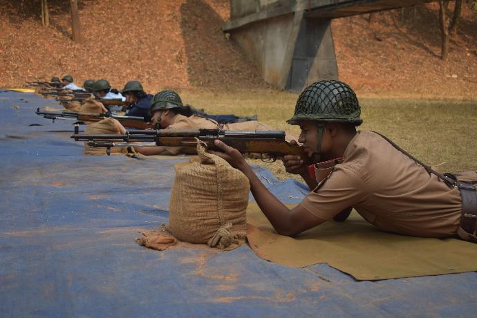 বিএনসিসি ক্যাডেটগণ ফায়ারিং অনুশীলন এবং যুদ্ধের প্রস্তুতি সম্পর্কে প্রশিক্ষণরত