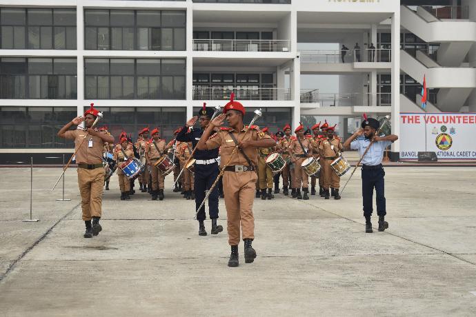 ব্যান্ড প্রশিক্ষণে বিএনসিসি ক্যাডেটদের অংশগ্রহণের স্থির চিত্র