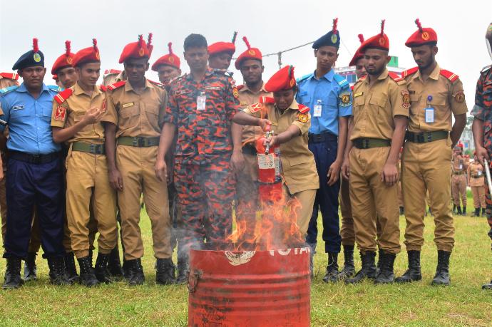 অগ্নি নির্বাপন প্রশিক্ষণে বিএনসিসি ক্যাডেটদের অংশগ্রহণ